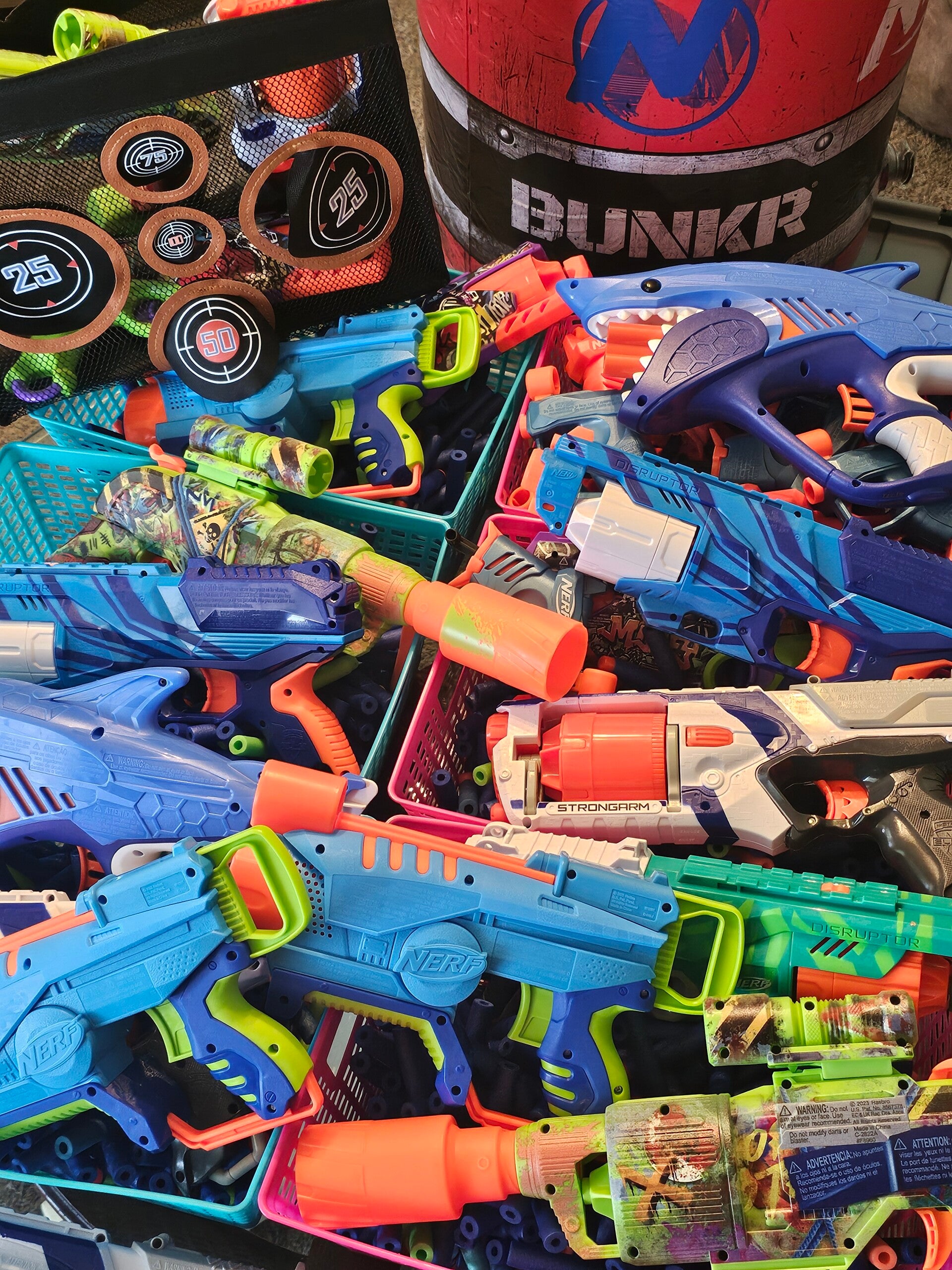 Enough guns and bullets for 20 competitors to enter the arena at the same time. Comes with inflatable bunkers and 1000 bullets. An exhilarating time for people of all ages.